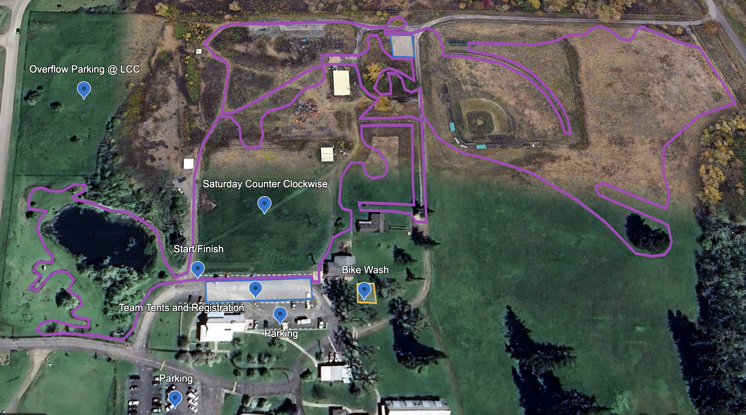 Saturday course map (purple). Course will be raced counter-clockwise.