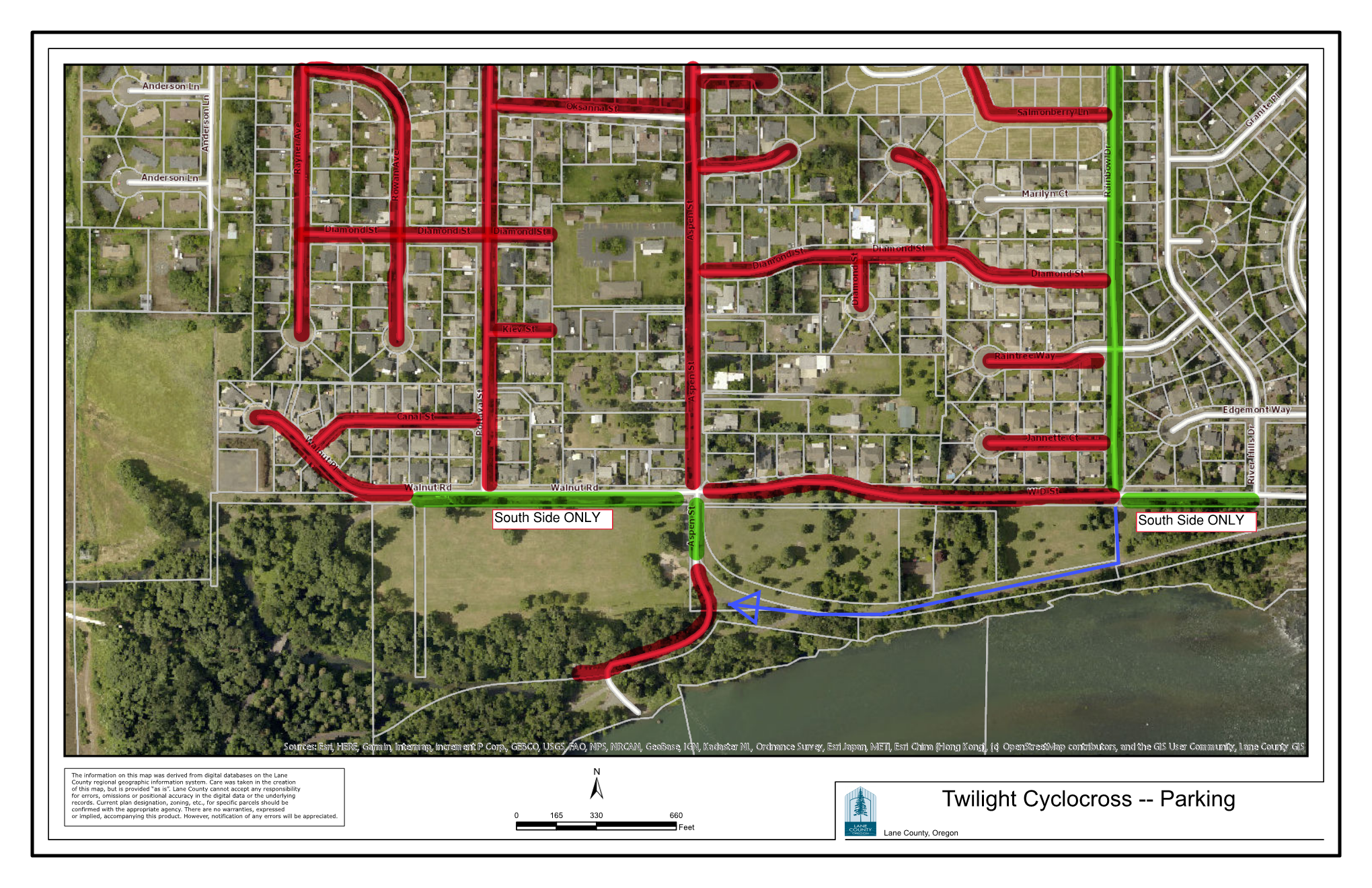 Parking at the race venue is limited. If you are able to ride to the race, please do. The course is easily accessible from the North Bank Path. If you drive, please obey the parking map below. This course is adjacent to a quiet neighborhood and racers are expected to show respect and consideration for the residents.