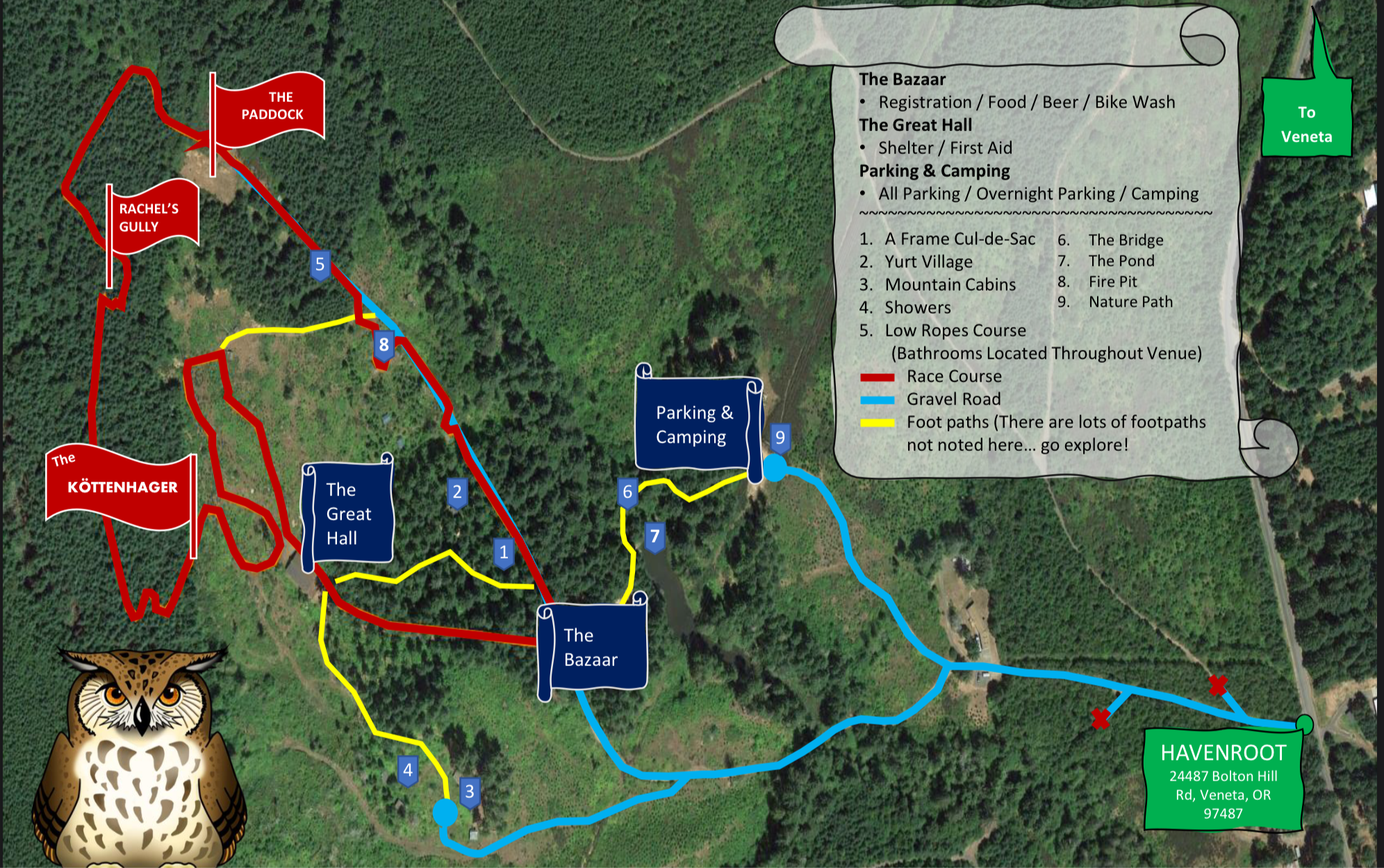 Course description: In the forested hills outside of Veneta, Oregon, this course has you riding “owl” the single track and elevation change that you could desire. You can expect to have a hoot on gravel roads, muddy ravines, stairs, twisty-turns and a run up that will have you hollerin’. You'll fly over five barriers per lap. Keep your head on a swivel for mushrooms in the forest! Some course features will be modified each day of the series.